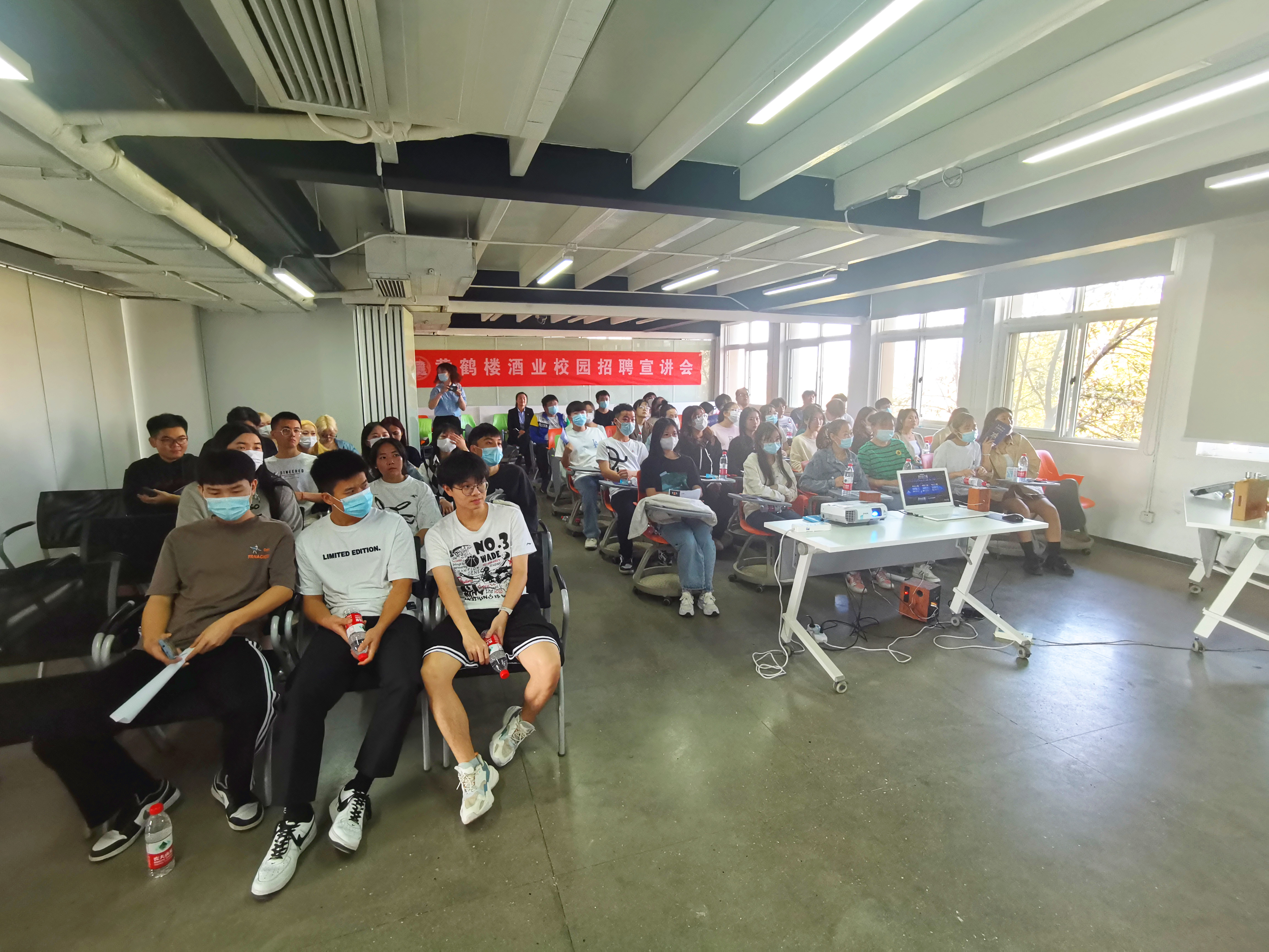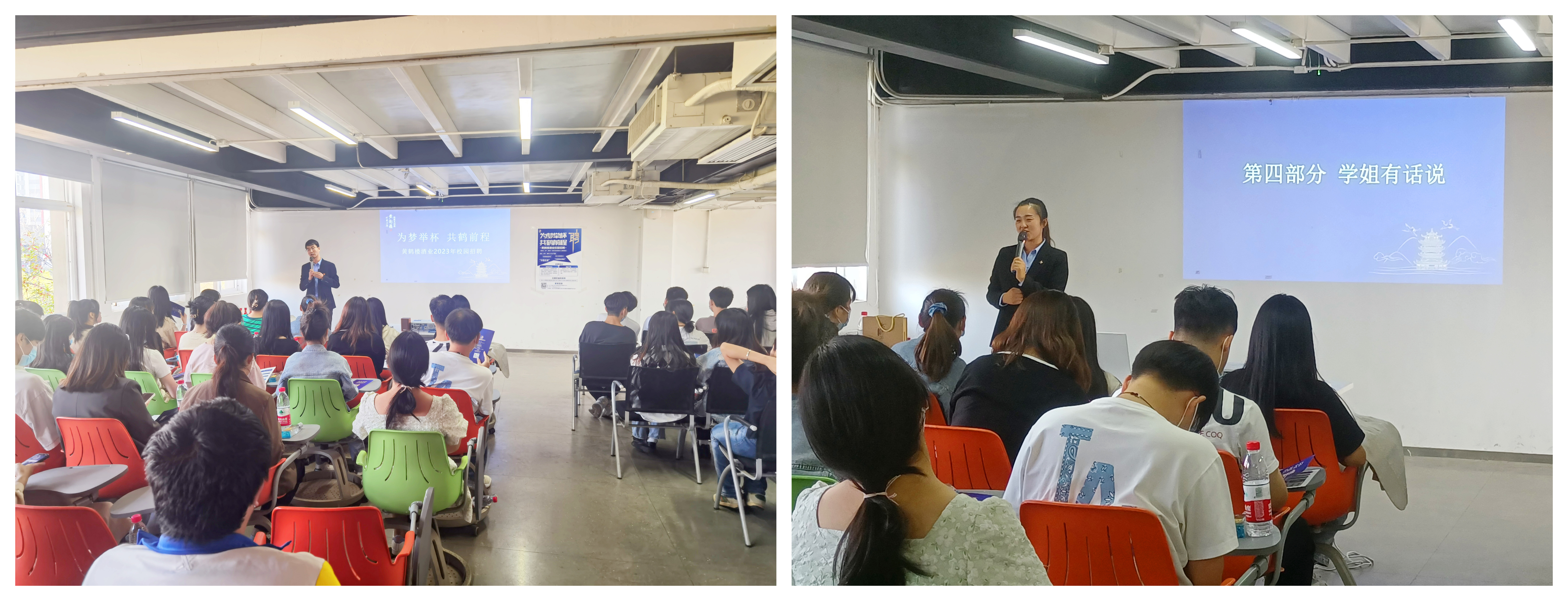 (通讯员 张智)为全面贯彻落实党的二十大报告关于实施就业优先战略的新部署新要求,积极应对疫情影响,加快推动就业工作进展,抢抓毕业生求职黄金期,进一步推进公司毕业生更加充分更高质量就业,公司邀请黄鹤楼酒业集团入校开展线下校园宣讲会。宣讲会于11月10日下午14:00在T13-301举行。邀请黄鹤楼酒业集团人力资源部招聘培训经理王超,招聘主管张倩倩,09级员工吴艳红等相关工作人员展开了校园宣讲活动,公司就业中心叶帆,公司党总支书记李文芳,辅导员周津、张智,商公司辅导员廖翔,成龙影视传媒公司辅导员刘茜、袁晓波、叶玉帅出席宣讲会,各公司员工踊跃参加。