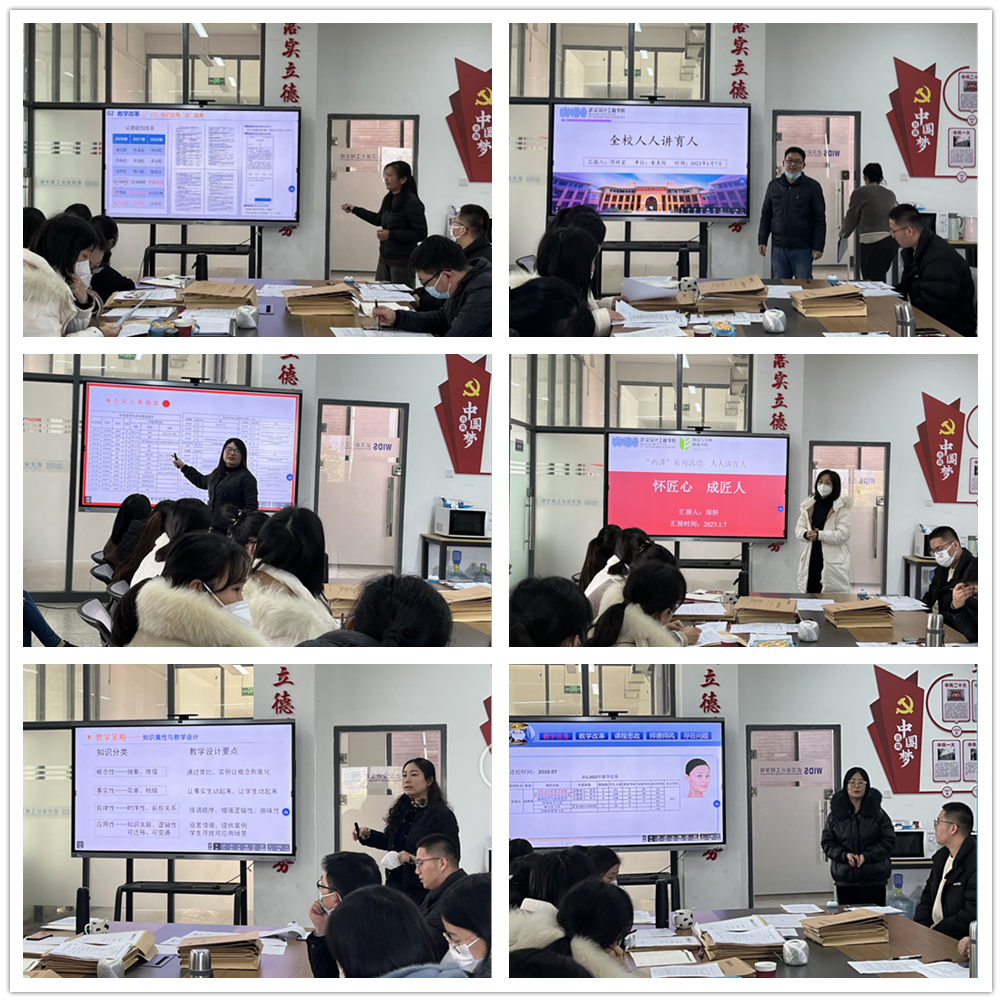 各系专任教师、辅导员和行政教辅人员依次围绕教书育人、科研成果、学风建设与员工指导、管理育人等方面进行了汇报。公司教学督导范露老师以“静心教书,潜心育人”为主题,以“SMART”原则为出发点,汇报了近年来在教学改革创新、科研项目进展等方面的成绩。食品科学与工程系主任郑妍对工程性学科主要存在的问题进行了剖析,解读了大国工匠应具备的基本素质