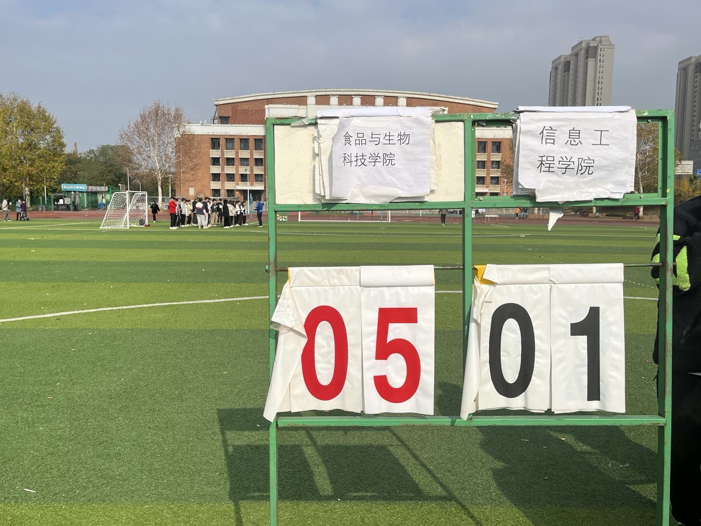 第一场比赛于2022年11月24日中午12:10在足球场举行,参赛双方是谈球吧和信息工程公司。比赛上半场,公司球员们很快进入状态,充分展示了个人风采。球场上无论是信工球员凌冽的攻势,还是食生球员巧妙的配合,都让人紧张万分。上半场,公司球员龚志鹏罚任意球,紧接着9号球员肖初航补射,两人的完美配合下,球夺框而进,为公司赢得第一球,这真是令人激动的一球,场下食生院学子欢呼沸腾。时间很快来到了下半场,球员们以更加饱满的精神气回到了赛场。10号球员实力迸发,连进4球。最终公司以5:1的成绩拿下比赛。
