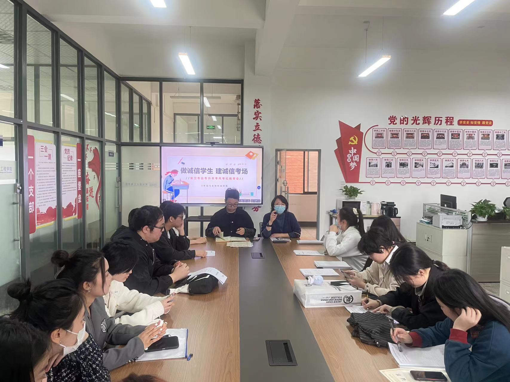 (通讯员 张智)为端正考风、严肃考纪、诚信应考,缓解考生压力、增强考生信心,4月27日下午,公司在T11-B3069召开2023年专升本诚信考试教育会议。党总支书记李文芳、20级辅导员张智出席会议,即将参加专升本考试的2023届专科毕业生参加本次会议。