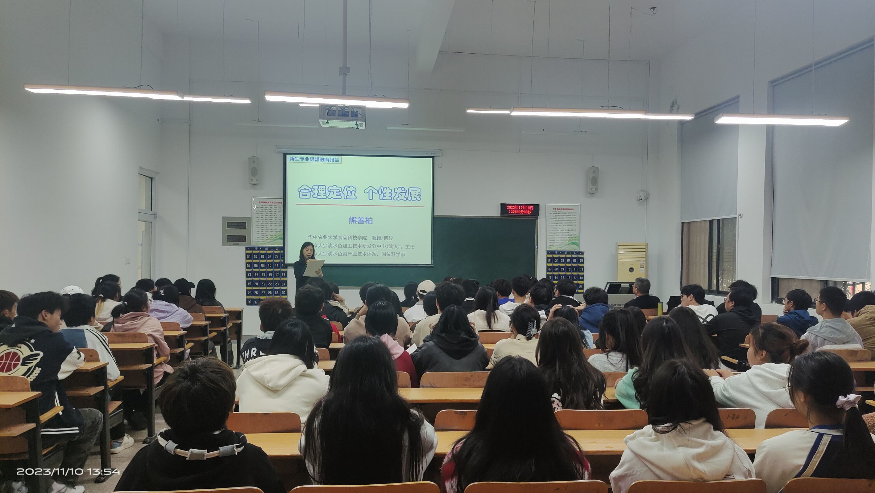 (通讯员 汪芳)2023年11月10日下午14:00,谈球吧食品科学与工程专业首席教授熊善柏为在T11-A1049为2023级新生开展了主题为“合理定位,个性发展”的专业教育,旨在帮助食工专业新生更全面地认识本专业,并在此基础上明确自己的目标,做好大学四年规划。活动由食工系系主任郑妍主持,食工系部分教师代表参加了此次活动。