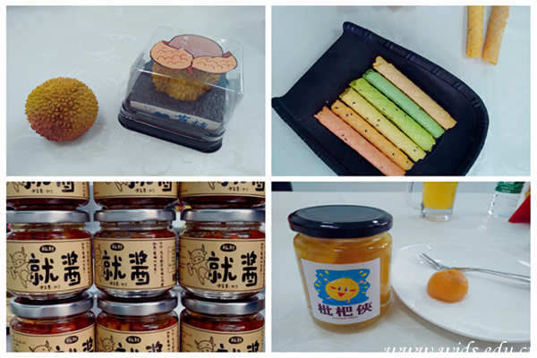 会前,各组向评委集中展示了各组的作品,会上,各团队采用ppt依次介绍课题研究背景、研究方案、研究结果、包装设计、营销策略等,并呈送相应产品供评委鉴评,然后进行提问答辩。同学们自信满满,评委们兴趣盎然,现场讨论非常热烈。