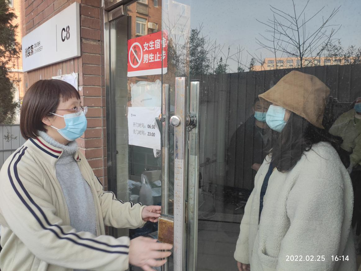 随后李书记又探望了和员工一同被封闭在8号楼的辅导员方娜,了解被封寝室楼员工的困难和需求,嘱咐方娜老师关注大家的心理状况,关心心理困难员工,照顾好每一个同学,还组织其他辅导员帮忙采购他们的生活必需品。