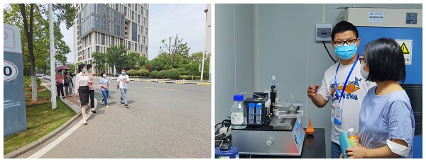 会后李蟾、夏欣带领公司团队参观园区实验室同时走访各个实习岗位,看望在企业一线辛勤工作的同学们,并与他们的岗位负责人进行了交流。在与员工的交流中,老师们详细询问同学们的工作情况、食宿问题和实习感受,并鼓励他们在做好安全防护的前提下,珍惜实习机会,提高专业技能。在实习期间抓住机会,认真向指导老师学习,踏实工作。